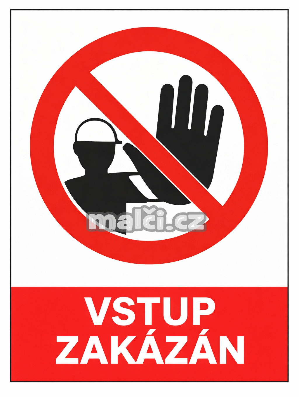 Tabulka s nápisem „Vstup zakázán“ a piktogramem slouží jako jasné upozornění na zákaz vstupu nepovolaným osobám a pomáhá předcházet rizikovým situacím.